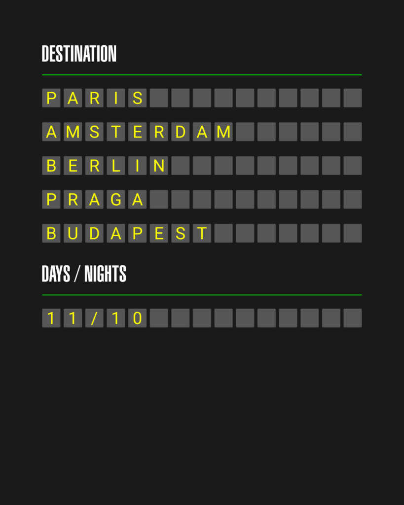 La opción más intensa y cañera. Muchas ciudades, poco descanso, mucha fiesta.
